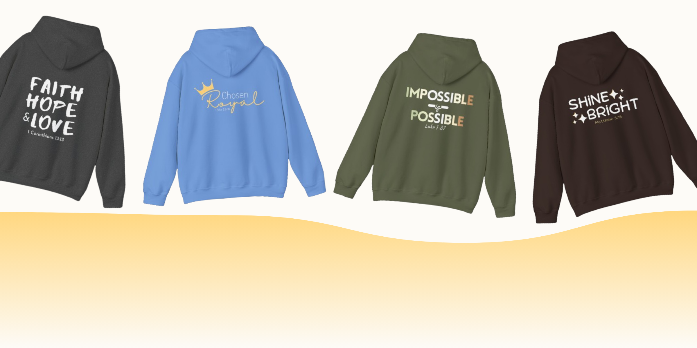 Shop our ever-growing collection of fleece lined hoodies! spread God's love to those around you without saying a word.